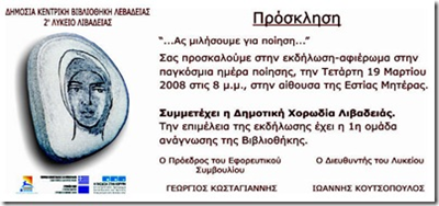 Σας προσκαλούμε στην εκδήλωση μας - αφιέρωμα στην Παγκόσμια Ημέρα Ποίησης